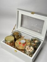 Celebrate this Diwali with the Classic Alpha Hamper from Kuchnaya Azimart. This premium gift box contains the best quality Almonds, Pista, Raisins, and Mixed Seeds, each elegantly packed in a 200 ml glass jar.
