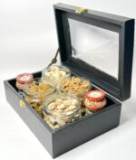 Perfect for corporate gifting, this beautifully curated hamper includes 1 Big Jar of 350 ml each of Raisins, Pista, Walnuts, Cashews, and 4 charming Mataki Diya to light up your festivities. Experience the joy of giving with premium dry fruits and traditional diyas, all meticulously packed for a memorable celebration. Make every moment special with gifts that show you care. Join us in spreading light and love this festive season!